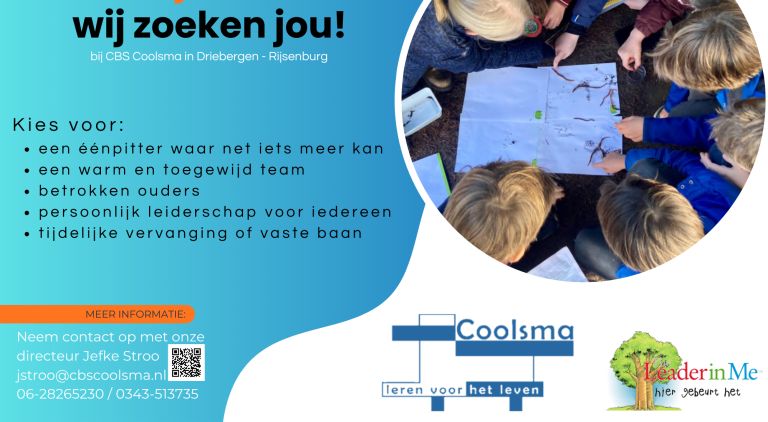 Omdat op Coolsma al jaren een hardwerkend team werkt. Het team bestaat uit collega's die er al meer dan 20 jaar met elkaar werken maar inmiddels is de helft ingestroomd in de laatste 3 tot 5 jaar. Men kent elkaar goed. Mede door een Enneagramtraject hebben de leerkrachten zichzelf, maar ook de collega's beter leren kennen. Het daarop volgende The Leader in Me-programma (TLIM) heeft het team doelgerichter leren kijken naar de eigen persoon en naar het onderwijs. Doordat men elkaar kent en de leeftijd gevarieerd is, staat er een stevig en ervaren team. De sfeer is goed en er kan prettig in en om de school met elkaar gewerkt worden. We weten waar we aan werken en waarom we dat doen. We leren gezamenlijk door middel van studiedagen en proberen elkanders expertise daarin te gebruiken.